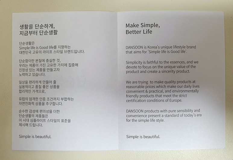 브랜드에 대한 설명서 한장과